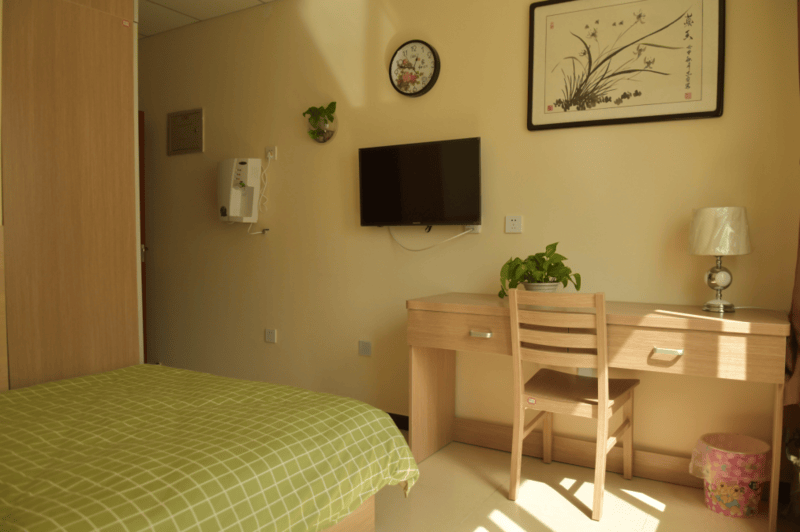 北京民众护理院房型涵盖套间、单间、双人间、多人间,每个房间均配备供氧、吸痰、呼叫装置及智能化空气净化器,独立卫生间设施无障碍,中央空调全年恒温,餐饮、被服洗涤、污水废物处理等配套完善,保障长辈居住舒适与环境安全。
